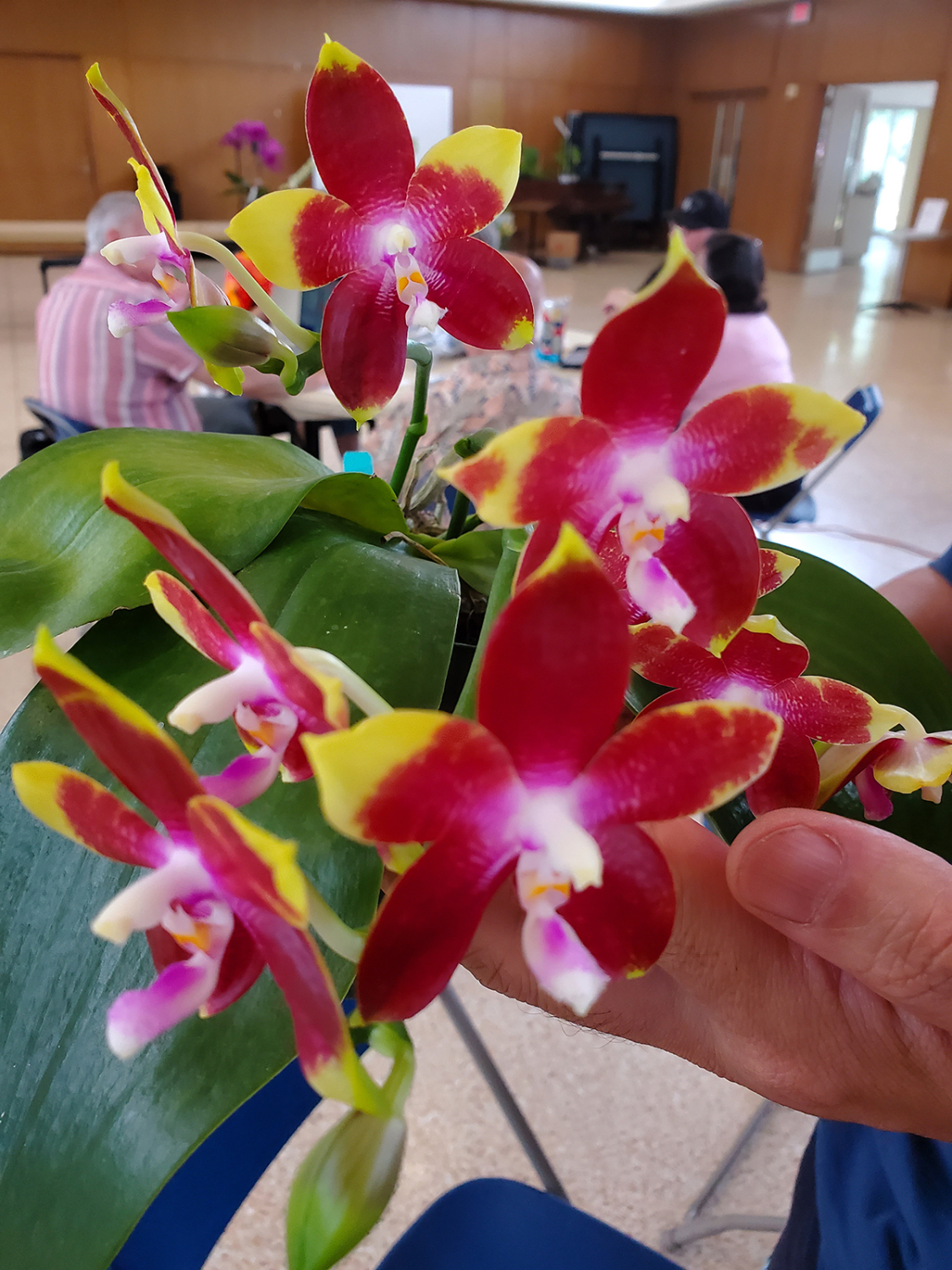 HJC awards, June 2023: Waironara Tango Fire ‘Meteor’ (Perreiraara Bangkok Sunset x Renanthera storiei), HCC/AOS 79, Award #20234122, presented by Sheila Skov; Aerides rosea ‘RA,’ AM/AOS 83, Award #201251210, presented by Laurie and Sheila Skov; Dendrobium Liberty Creek Vernaon Parish ‘Louisiana’ (Dendrobium Nida x Stephen Batchelor), AM 85, Award #20234125, presented by Al Taylor; Cattleya Irene’s Circle ‘Louisiana’ AM 81 (Cattleya Irene Finney (1964) x Circle of Life), Award #20234124, presented by Al Taylor; and Cymbidium ensifolium ‘Wuhooh’s Pride,’ HCC 76, Award #20234123, presented by Bryan Wu.