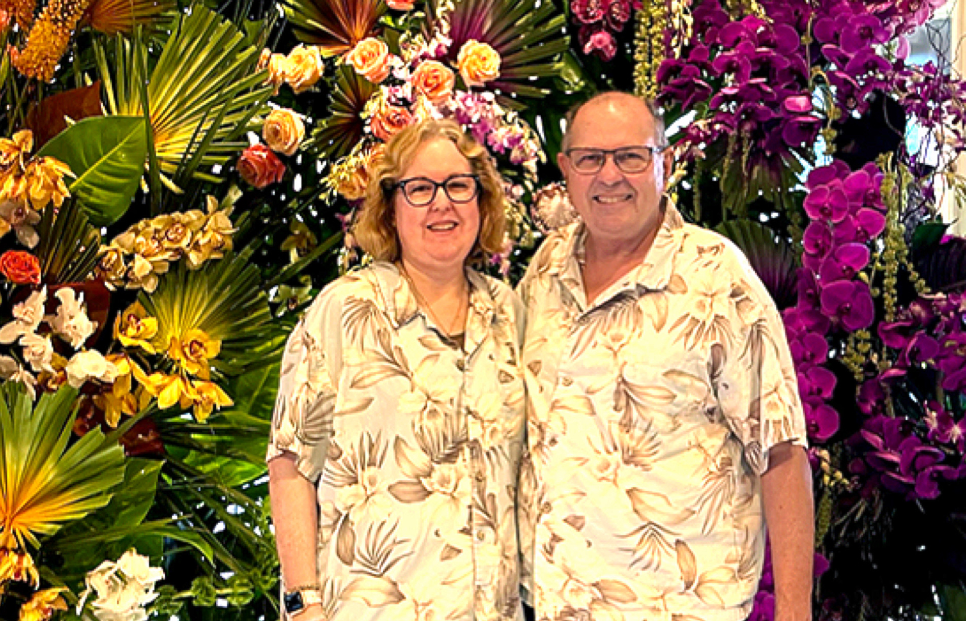 Keith and Dina have now registered plants in the Oncidium, Cattleya, Phalaenopsis, Vanda, and Dendrobium alliances, and have created their own genera (Emigara). In recent years they’ve enjoyed going to judging, seeing everyone’s beautiful plants, and bringing their own. They have received more than 70 flower quality awards, including nine awards on their original crosses. In August 2024 Keith became a student AOS judge.