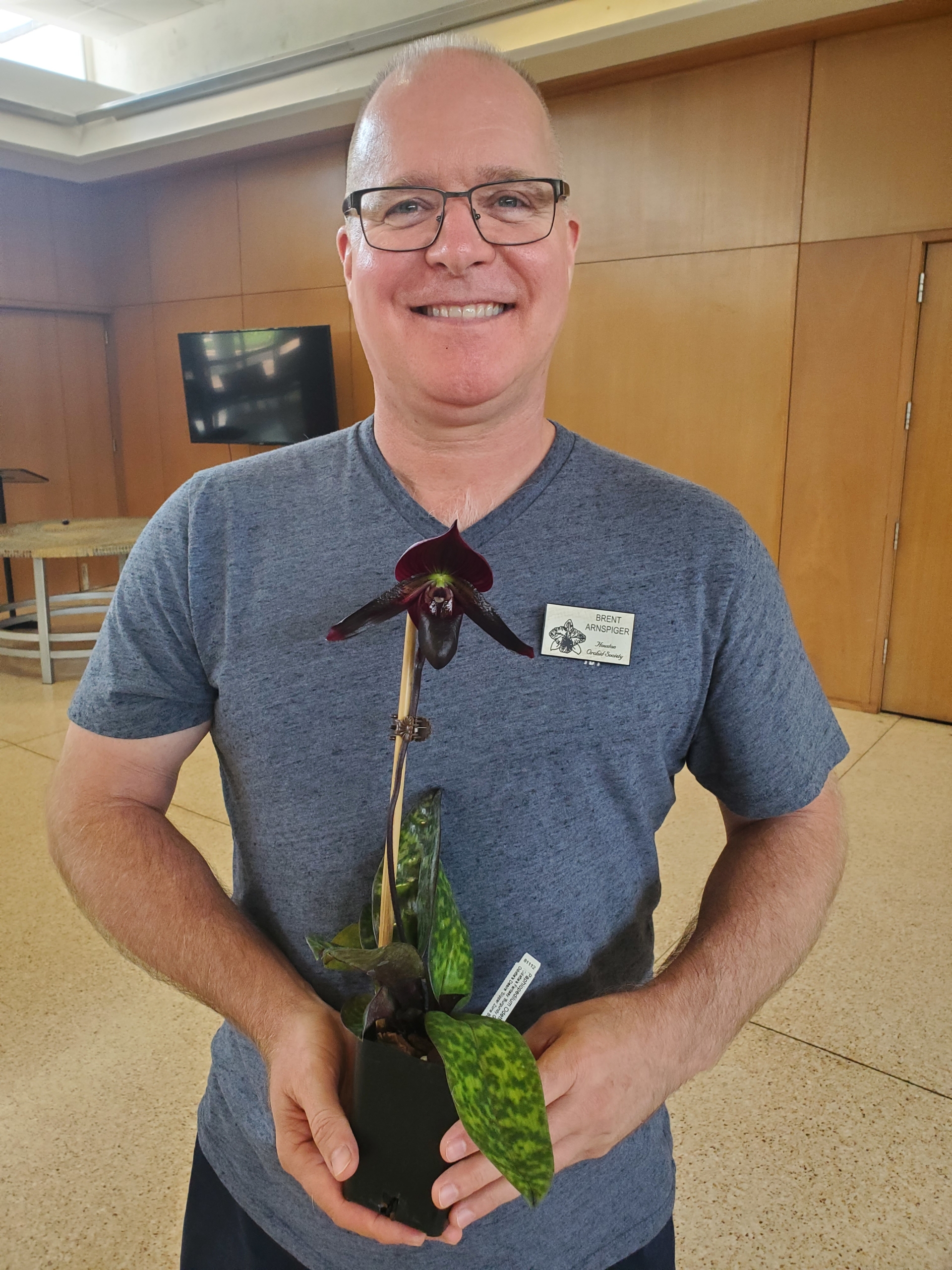 Paphiopedilum Fred’s Triumph (Magically Wood x Magic Fred) ‘Arnspiger,’ AM 81, presented by Brent Arnspiger