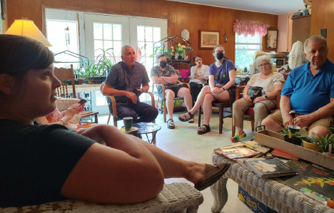 With several dozen new members eligible to come to Newcomers, nearly 20 people crowded in Joe’s and my little home. It was a super hot day, so I think everyone appreciated the air conditioning.